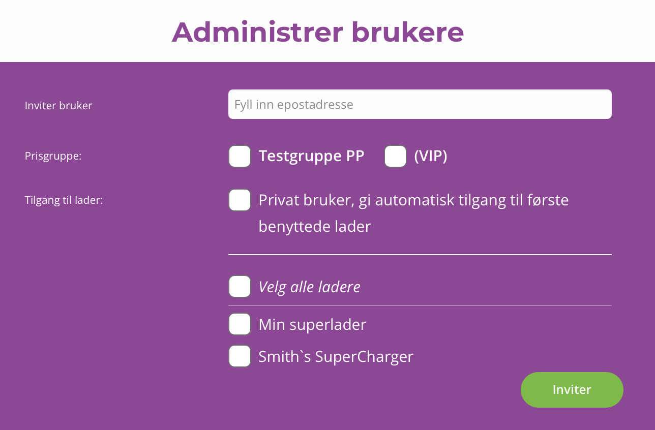 Spørsmål: Hvordan invitere inn en ny eller flere nye brukere til ladenalegget?